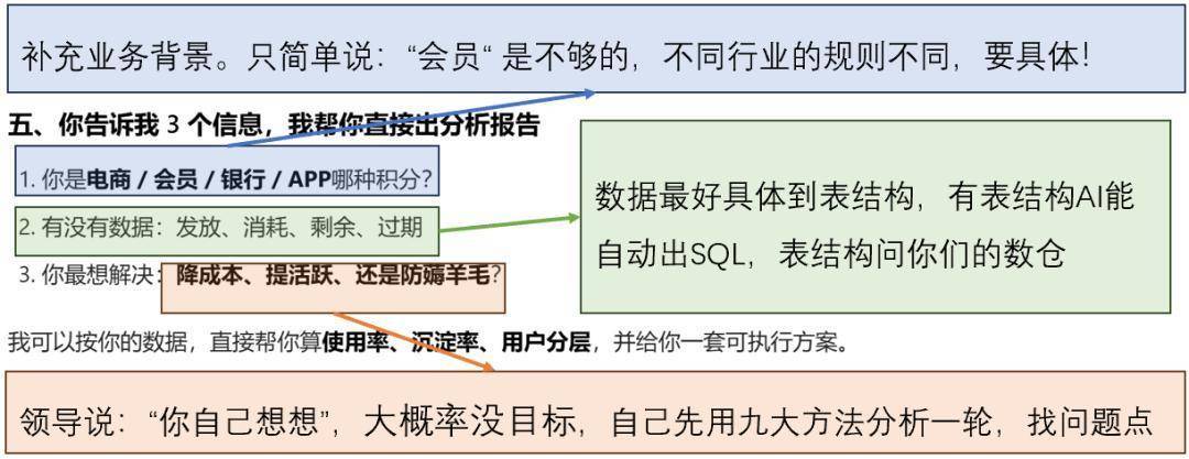 1、定义一定要清晰。比如积分没啥用,如果是说生产端,一般指:送积分不能带来效益(比如拉新人、促消费);如果是消耗端没用,一般指:积分不受客户喜欢,客户兑换使用得少。细节一定确认清楚,避免南辕北辙。